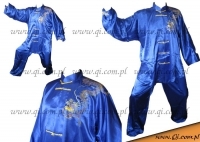 odcień ciepło niebieski, zapięcia żółte, haft smoka pomarańczowo-żółto-biało-brązowy