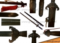 Przybliżona waga miecza w pochwie: 1,20kg, samego miecza: 65dkg